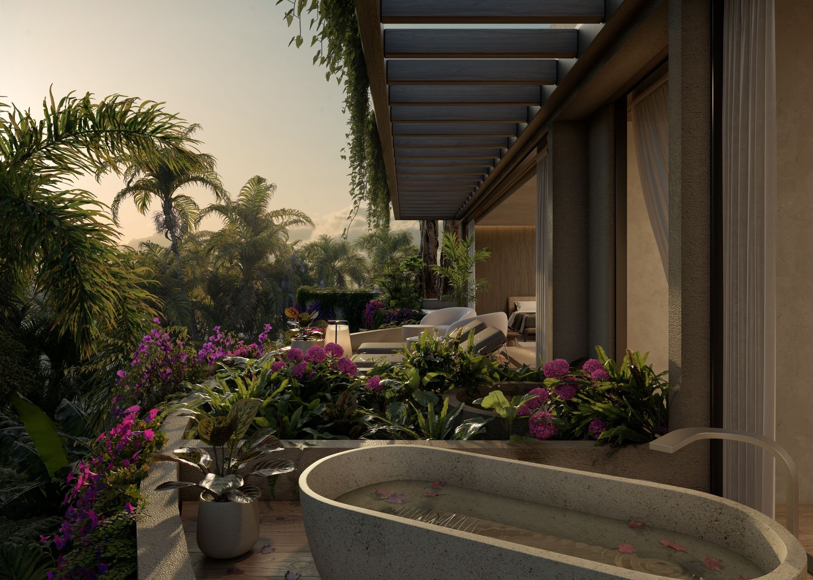 crowning roof level features a sumptuous master suite, complete with a private terrace, walk-in closet, luxury bathroom with