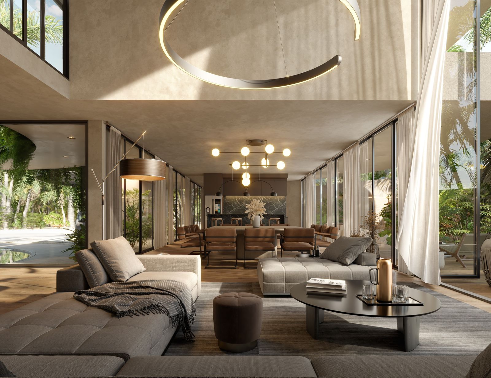 This extraordinary luxury villa spans an impressive 1,458.91 m2 of sophisticated living space, harmoniously blending indoor comfort with outdoor tropical elegance.