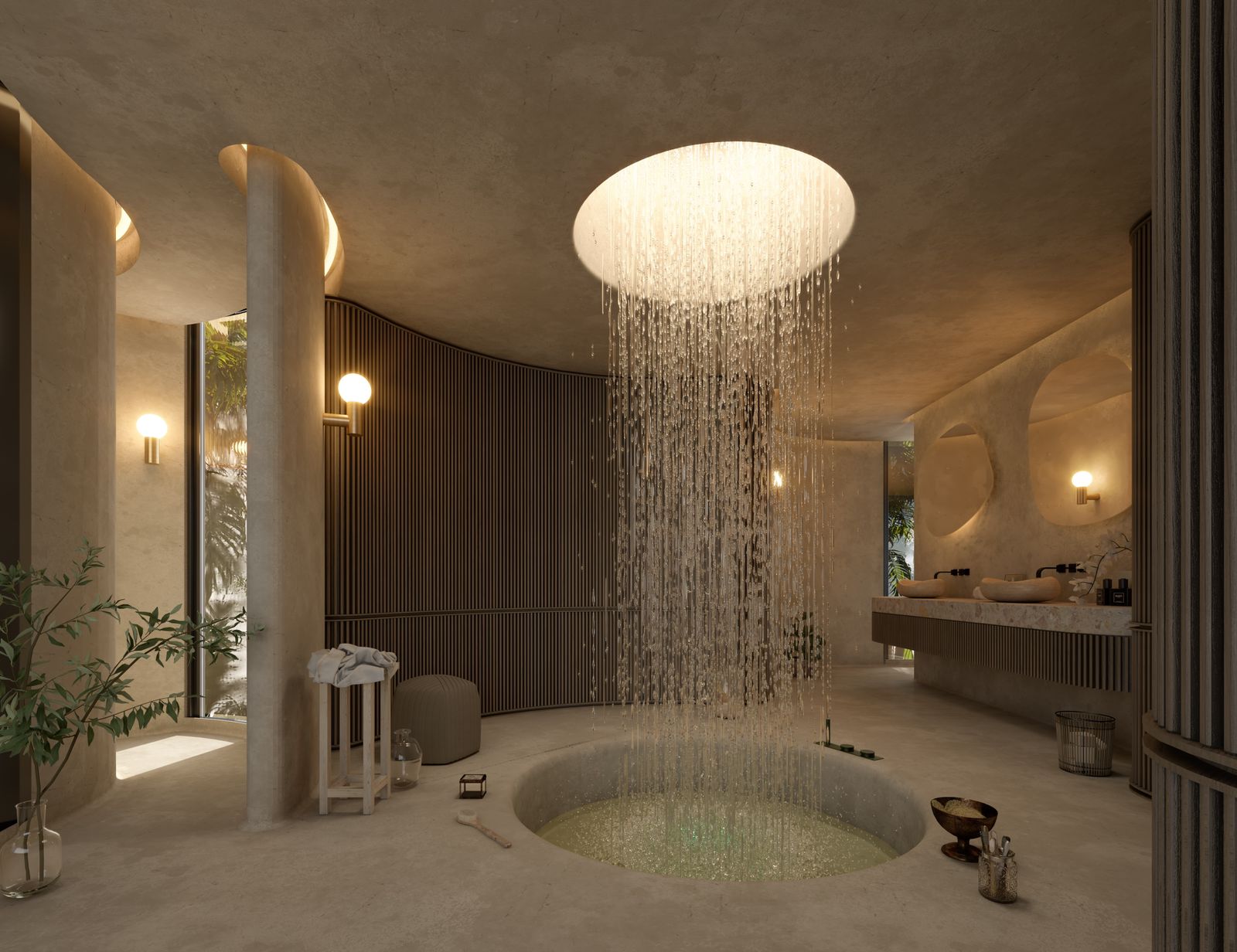 sauna, and a second infinity pool overlooking the lush landscape.